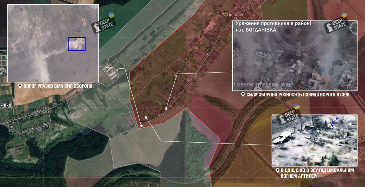 "Ночью штурмовые группы врага пробились на северную окраину города. Богдановка сейчас находится под контролем Сил обороны. Идет сражение, враг не прекращает штурмов", - заявили в МО.