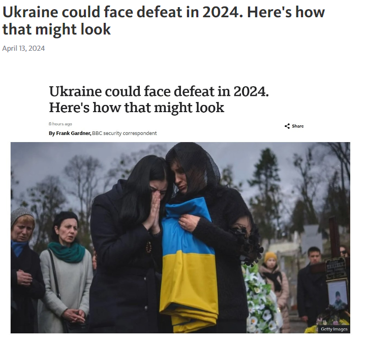 Бывший командующий Объединенными силами Великобритании Ричард Бэрронс считает, что Украина может потерпеть поражение от России в 2024 году. Поражение будет состоять не в полном военном разгроме ВСУ, а в том, "что Украина может почувствовать, что не может победить".
