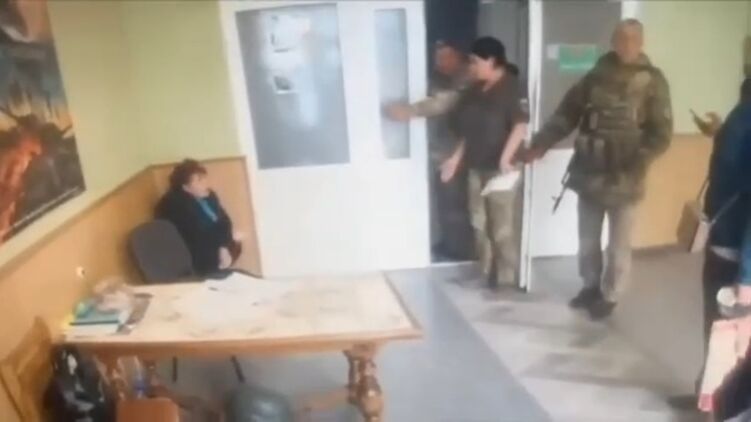 На новом видео из Дунаевцов видно, что женщина сидит в углу одного из кабинетов ТЦК и на виду у всех справляет нужду под возмущение одного из военкомов-мужчин.