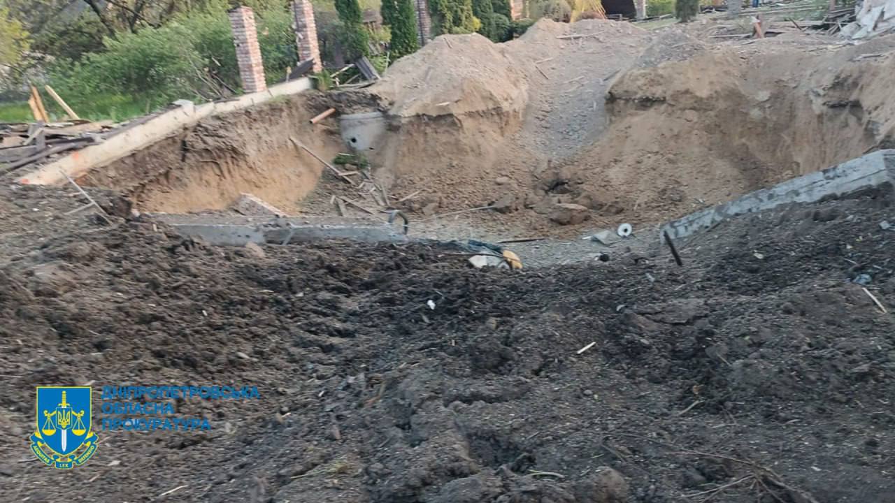 22.05 Воронка после падения сбитой ракеты в Днепре.