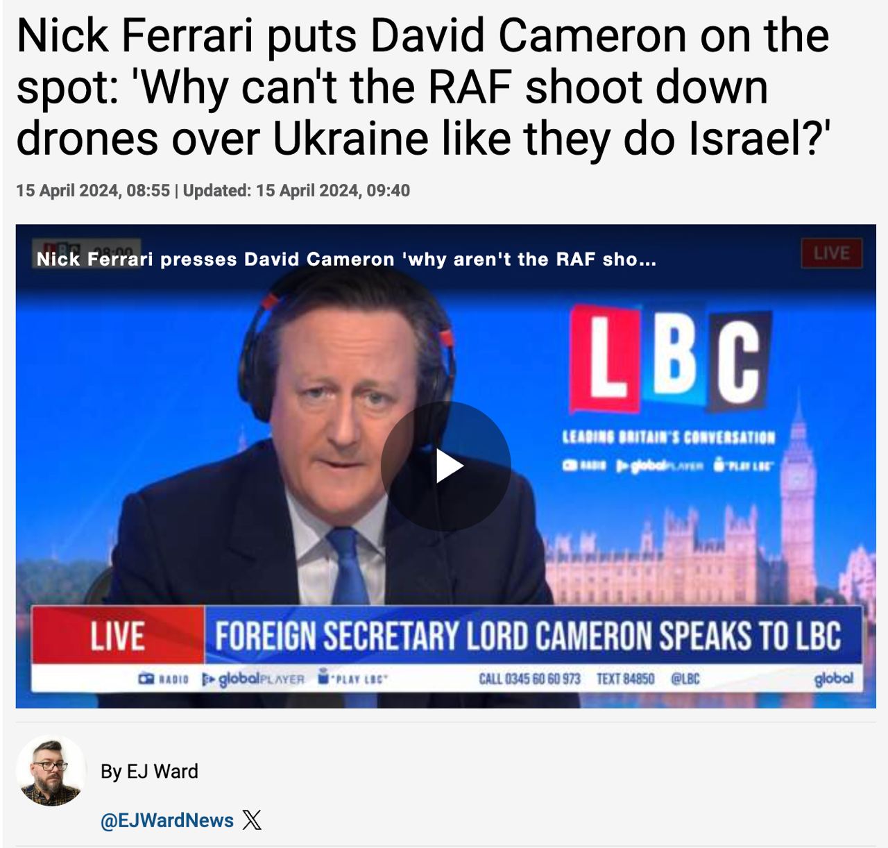 Такой вопрос журналист LBC задал министру иностранных дел Британии Дэвиду Кэмерону.