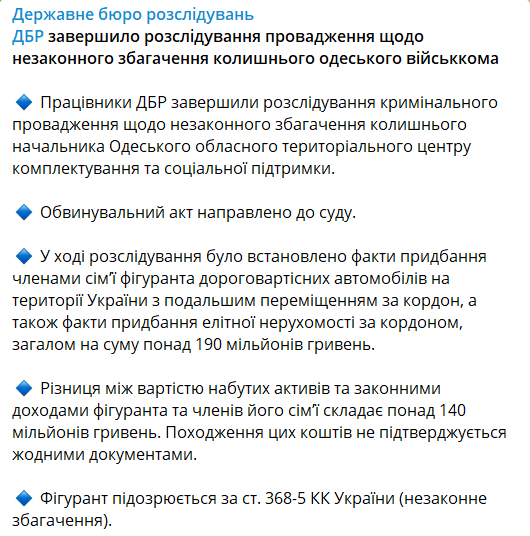 Об этом сообщает пресс-служба Государственного бюро расследований в своем телеграм-канале.