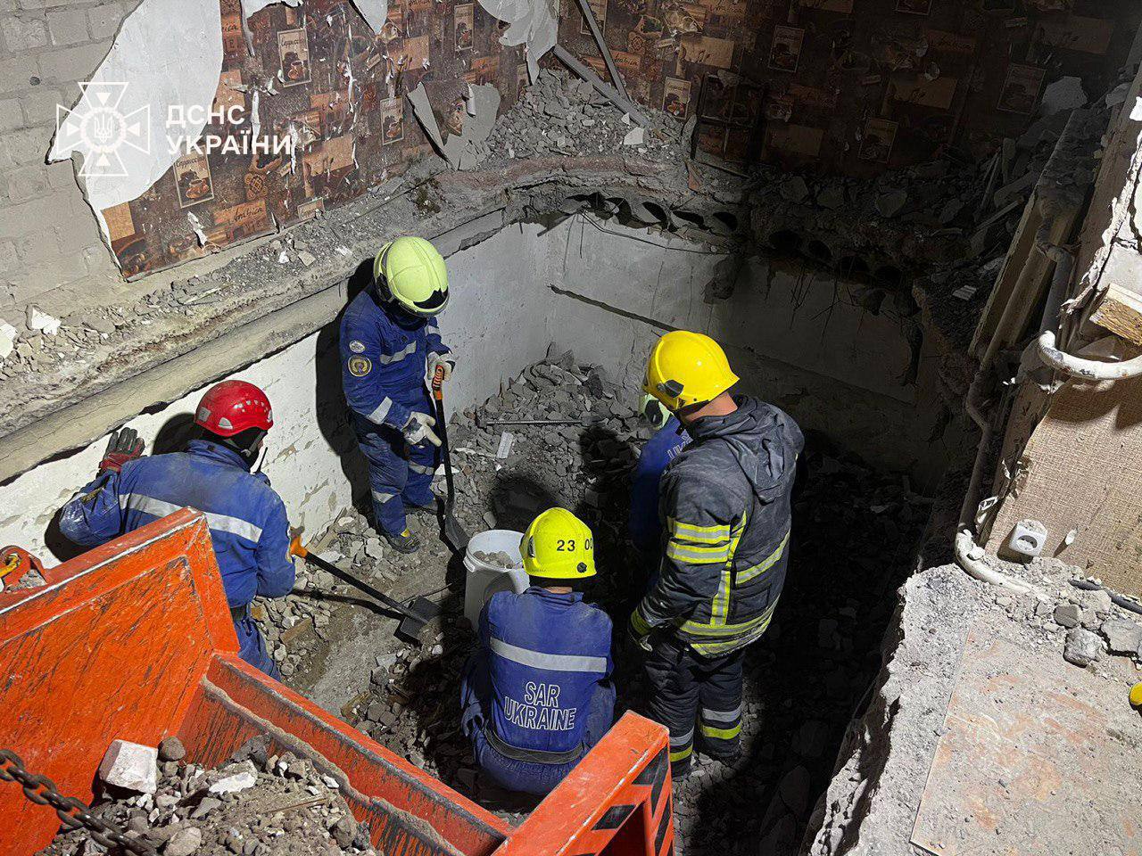 Как сообщает Нацполиция, разобрано более 70% разрушенного ударом здания (видимо, речь идет о пострадавшей гостинице).
