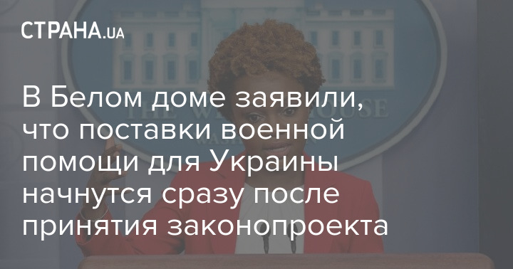 Спикер Белого дома Карин Жан-Пьер заявила, что поставки вооружений Украине начнутся сразу же после того, как законопроект о продлении финансирования помощи будет принят Конгрессом США.