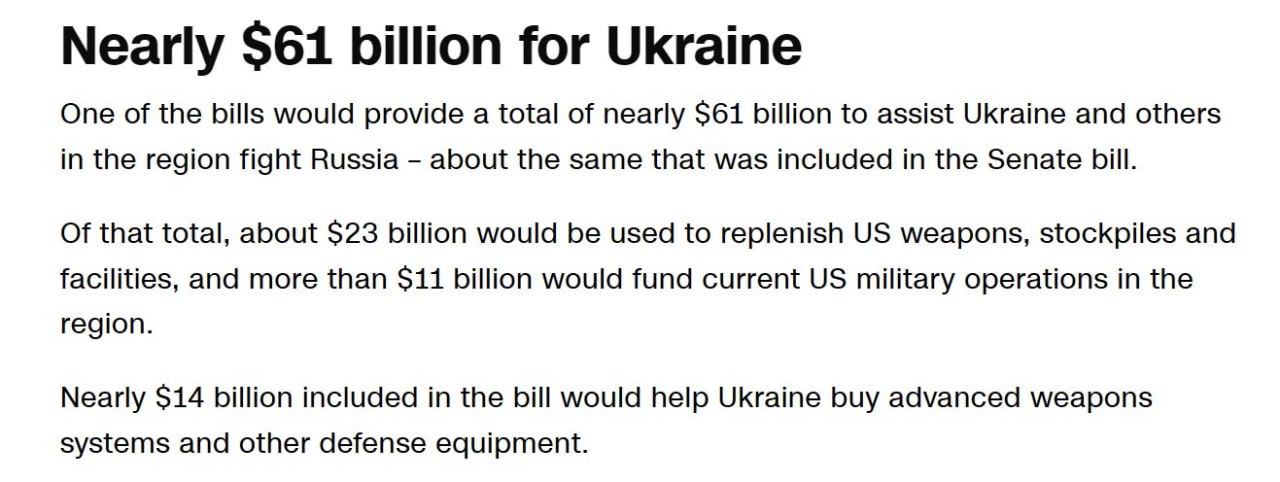 Накануне голосования CNN и другие западные агентства называли сумму в 13,8 (или "почти 14") миллиардов долларов на закупки военной техники для Украины.