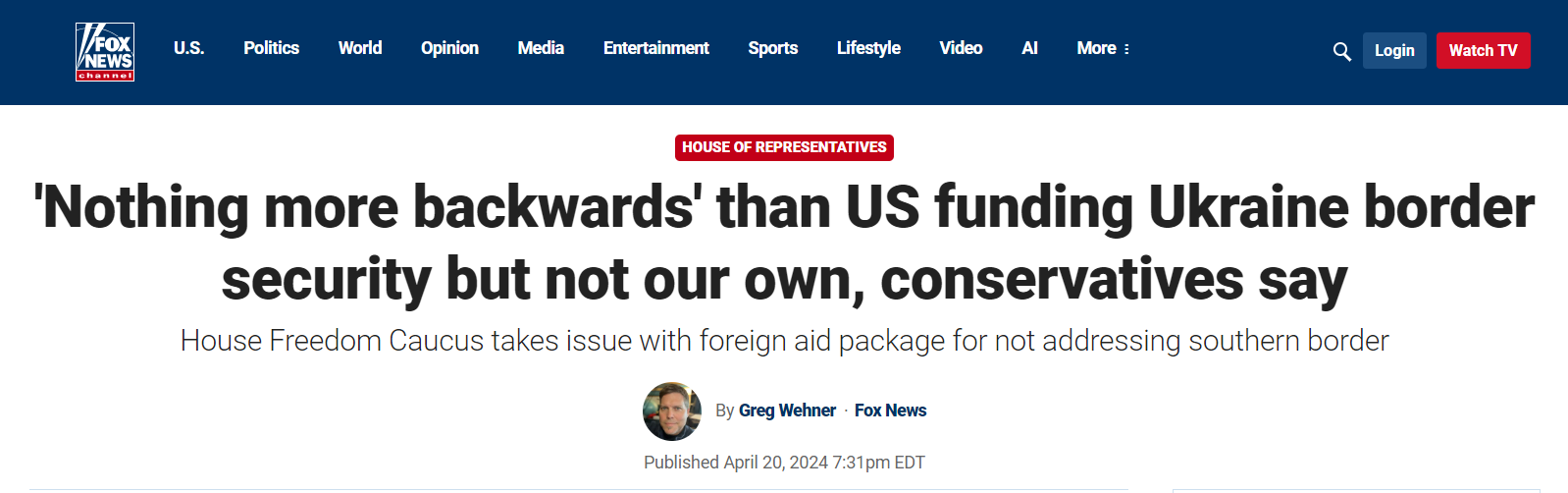 Республиканцы Палаты представителей, которые не голосовали за пакет помощи Украины, недовольны тем, что он не включает вопрос укрепления южной границы.
