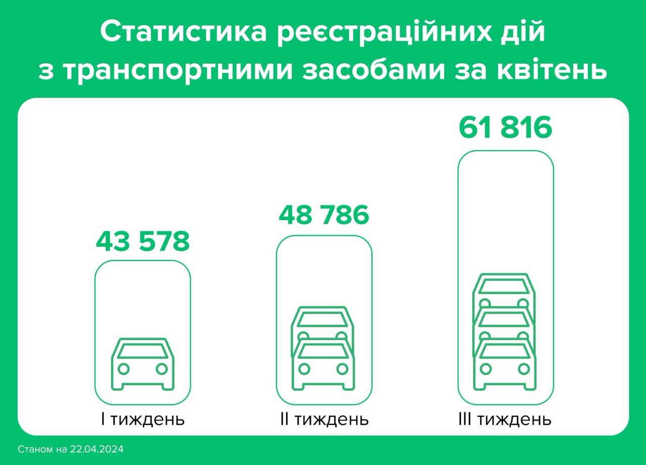За три недели апреля количество перерегистраций автомобилей в Украине выросло на 42% - до 154 178 операций.