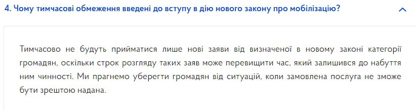 Услуги по заявлениям, поданным до 23 апреля, а также услуги в отношении детей, оформляемые мужчинами мобилизационного возраста, будут предоставляться.