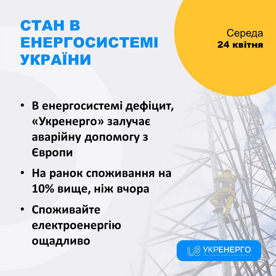 В энергосистеме Украины с утра наблюдается дефицит. Фото: "Укрэнерго"