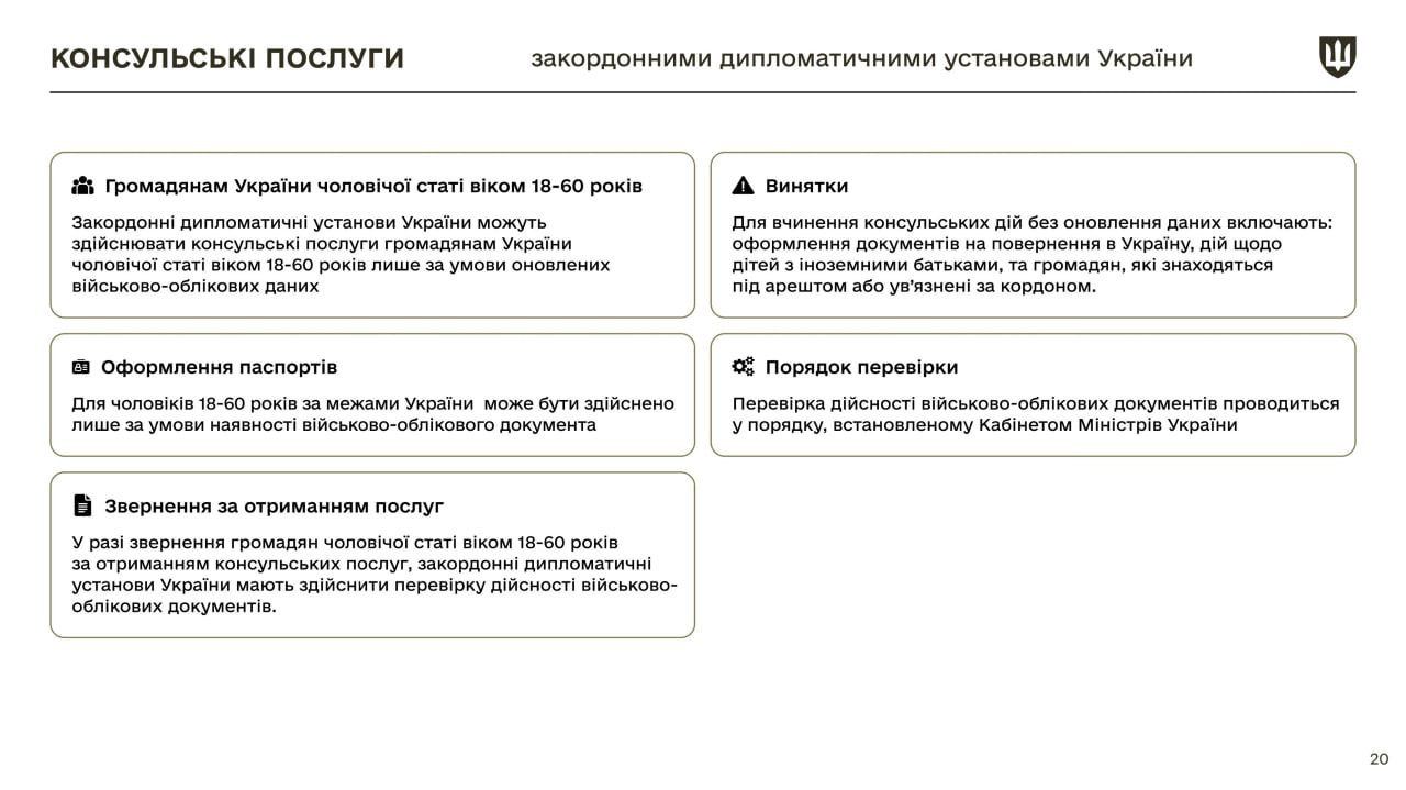Консульские услуги мужчинам за границей будут оказываться только при условии обновления военно-учетных данных. А выдача паспорта возможна только при условии наличия военного билета.