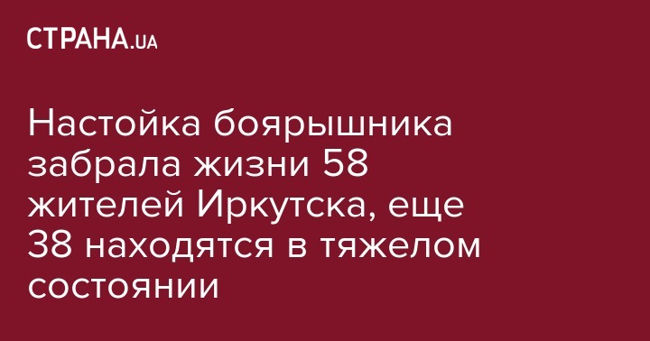 По состоянию на 20 декабря жертвами отравления суррогатным спиртосодержащим средством "Боярышник" в Иркутске стали 58 человек, еще 38 человек находятся в тяжелом состоянии и продолжают бороться за свою жизнь. Об этом сообщает "ИТАР-ТАСС".