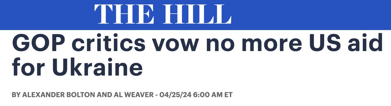 Отдельные республиканцы заявляют, что принятый пакет американской помощи Украине будет последним.