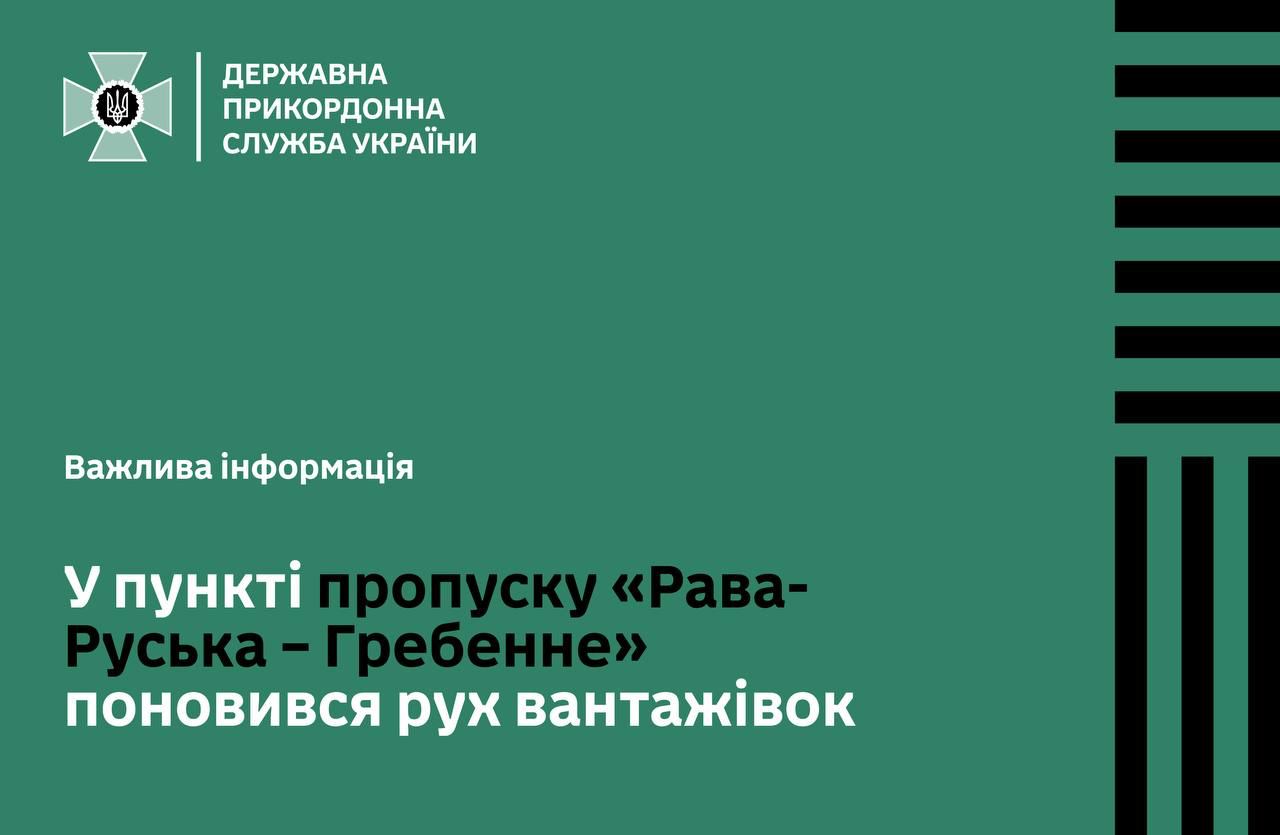 "Польские фермеры прекратили блокировку движения грузовых транспортных средств перед пунктом пропуска "Гребенное – Рава-Русская". Оформление и пропуск через границу по двум направлениям осуществляется в обычном режиме", - говорится в сообщении.