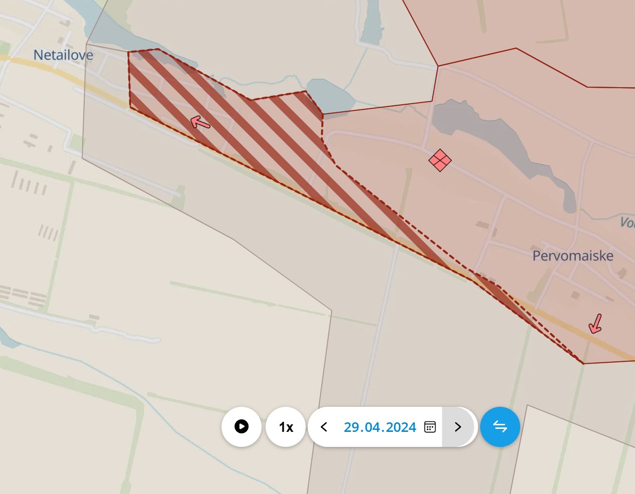 К югу от Очеретино минобороны РФ заявило о захвате села Семеновка (о чем ранее писали украинские и российские паблики). Еще южнее у армии РФ было продвижение в селе Нетайлово со стороны Первомайского.
