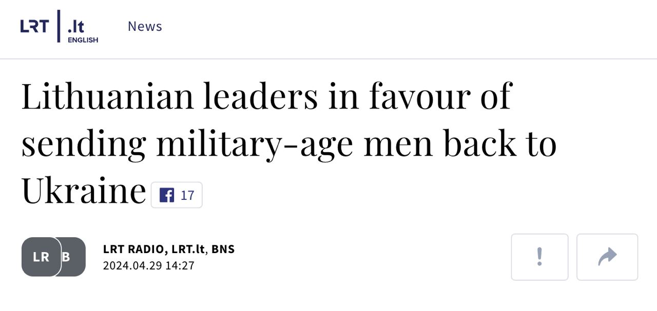 Власти Литвы поддержали идею возвращения в Украину мужчин призывного возраста. Президент Гитанас Науседа заявил, что Украина должна иметь средства и инструменты, чтобы "пригласить своих молодых мужчин служить родине".