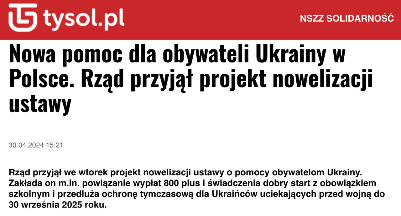 Также он сообщил, что польское правительство внесло изменение в закон о помощи украинцам, передает местное издание Tysol.