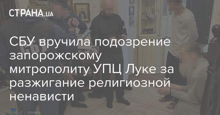 СБУ вручила подозрение запорожскому митрополиту УПЦ Луке за разжигание религиозной ненависти