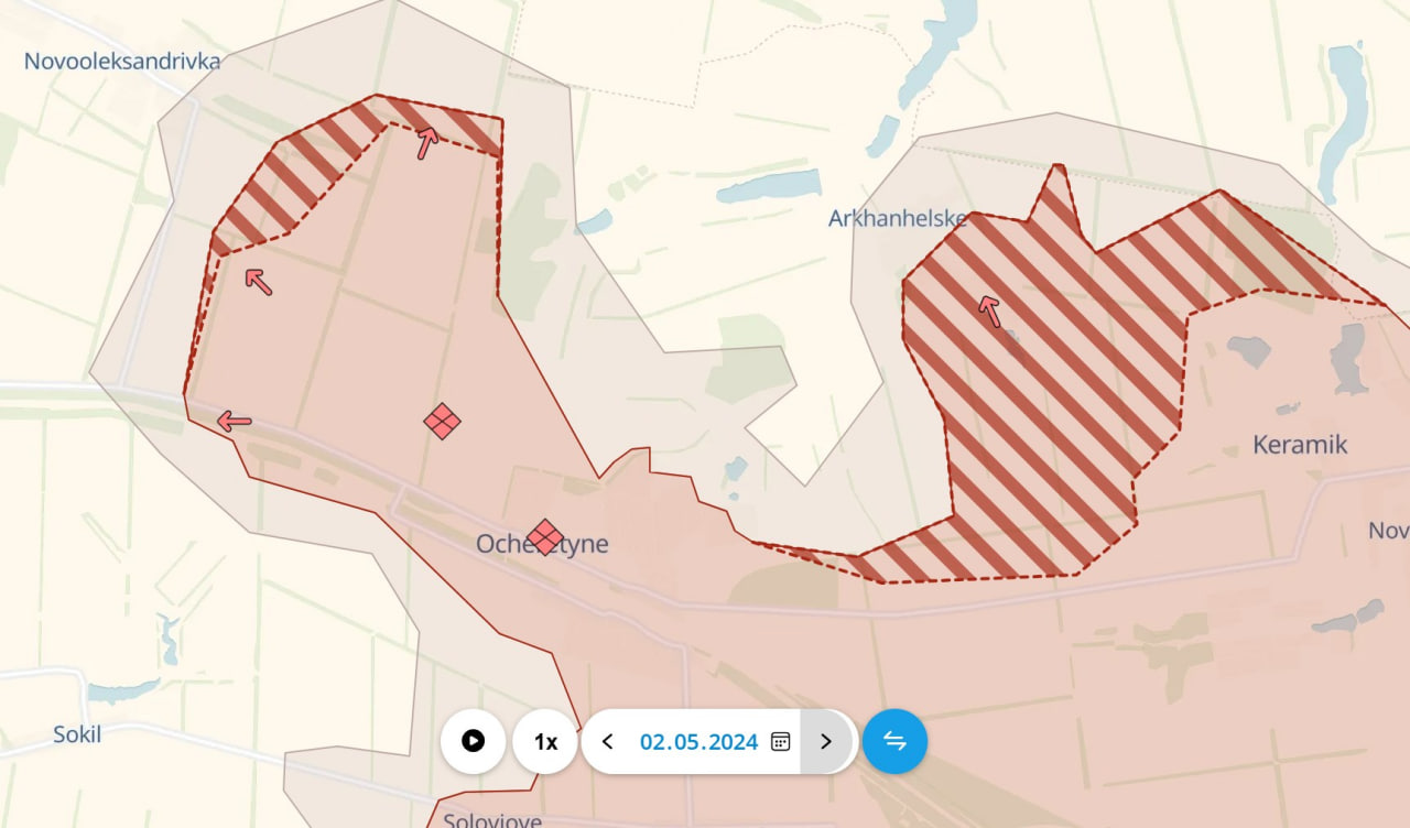 Тем временем Deep State сообщает о существенном продвижении армии РФ возле Очеретино - в Архангельском, где, судя по карте ресурса, бои идут в середине поселка, и возле Новоалександровки. А также южнее - под Первомайском.
