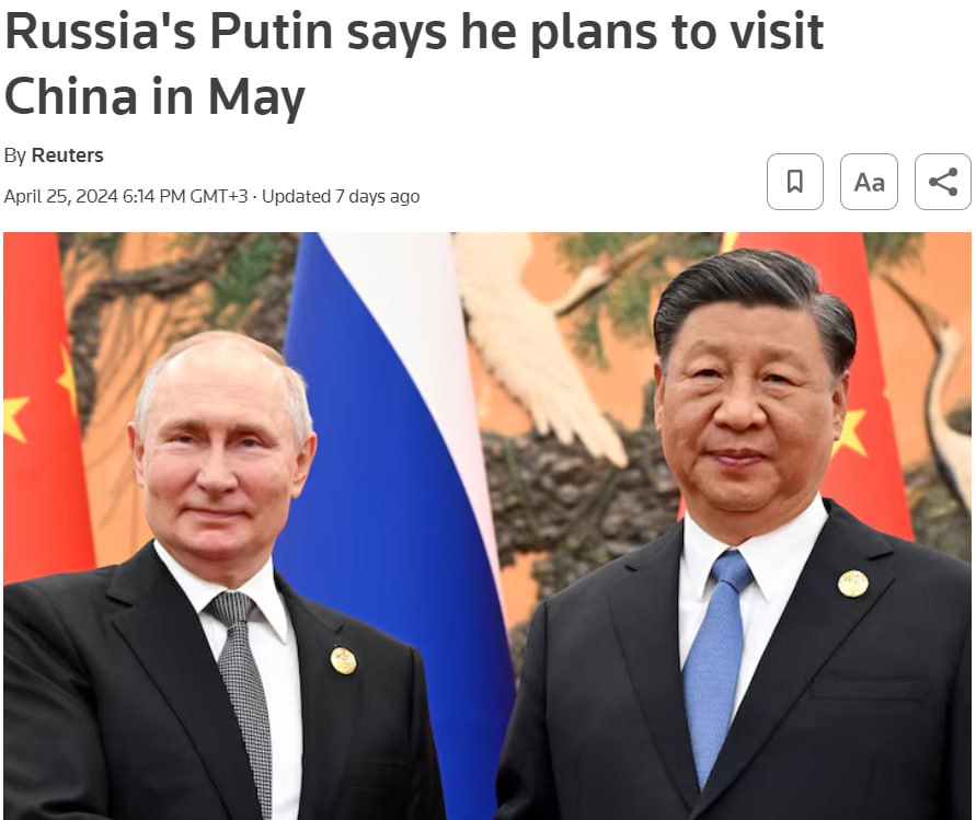 В марте СМИ писали, что в мае Путин планирует посетить Китай для переговоров с лидером КНР Си Цзиньпином.