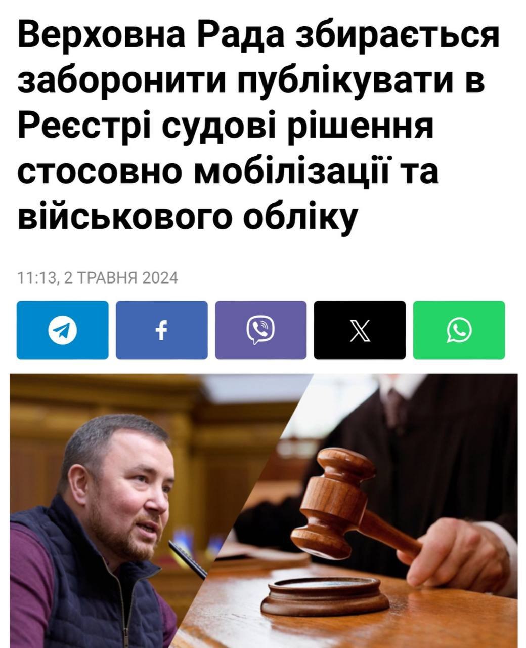 1 мая комитет Рады по вопросам правовой политики рекомендовал принять законопроект №7033-д, внесенный "слугой народа" Денисом Масловым и Сергеем Минько из группы "Довира". Документ предлагает закрывать отдельные сведения в едином государственном реестре судебных решений "в связи с чувствительностью этой информации в условиях войны".