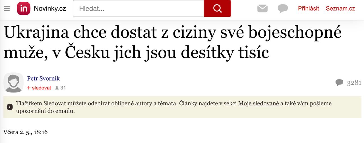 "Я понимаю проблему украинских мужчин, уезжающих в призывном возрасте. Чехия давно поддерживает украинских беженцев, и мы приветствуем их на нашей территории. Но только не тех, кто пытается избежать законной воинской повинности", - приводит слова Липавского местное издание Novinky.