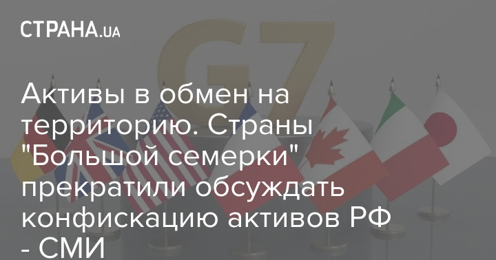 Страны "Большой семерки" прекратили обсуждать вопрос конфискации российских активов. Параллельно обсуждается гипотетический вариант вернуть активы РФ - в обмен на отказ Москвы от захваченных украинских территорий.