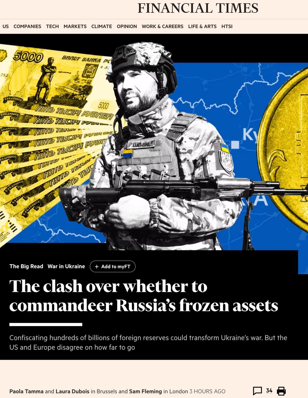 "Долг, привлеченный вопреки ожиданиям получения прибыли в течение десятилетий, должен быть подкреплен государственными гарантиями или самими российскими активами, а это может оказаться сложным и дорогостоящим", - заявил FT чиновник ЕС.