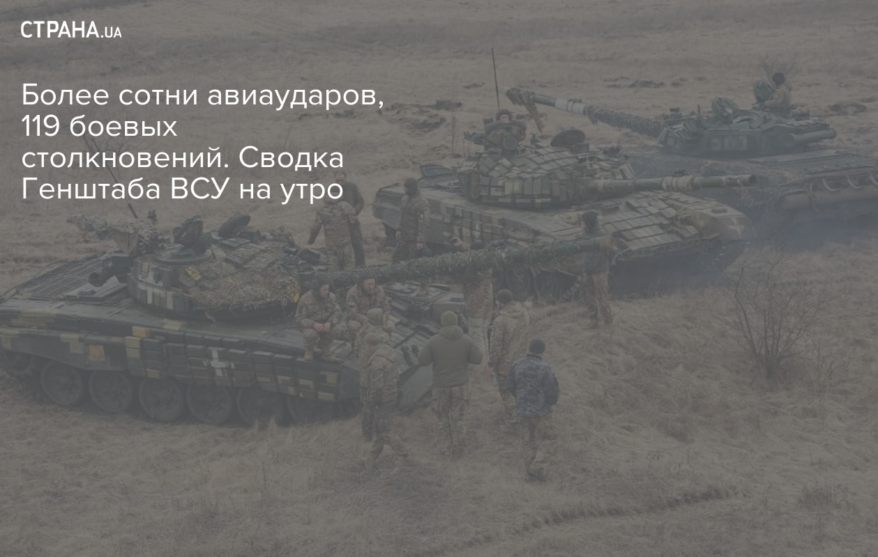 За сутки произошло 119 боевых столкновений. При этом ВС РФ нанесли 5 ракетных и 105 авиационных ударов, совершив 91 обстрел из РСЗВ.