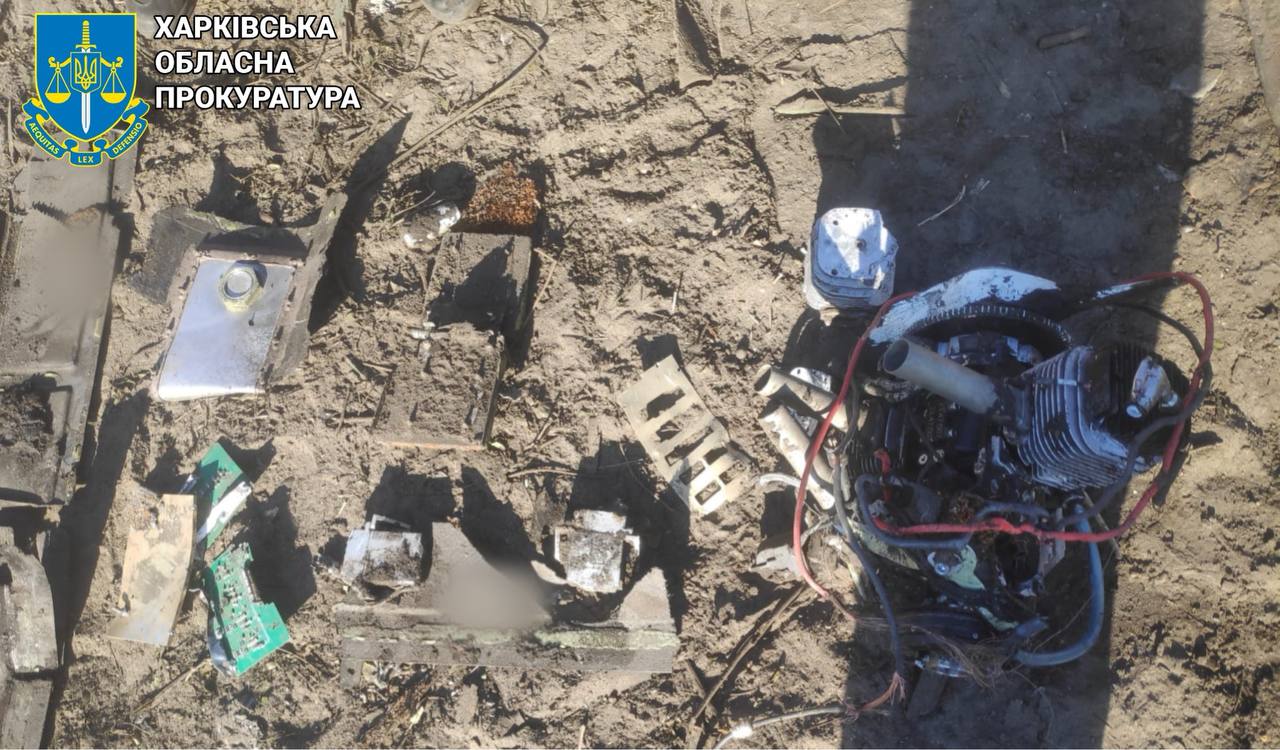 Последствия падения обломков беспилотника в Харькове. Фото: прокуратура