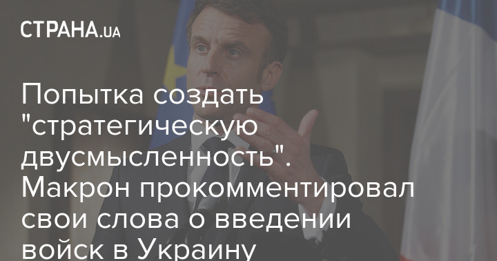 Президент Франции Эммануэль Макрон снова заявил, что его слова о введении войск в Украину - это попытка создать "стратегическую двусмысленность" для РФ.