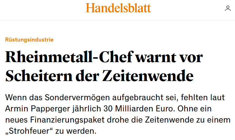 Об этом заявил гендиректор Rheinmetall Армин Паппергер в ходе мероприятия в Индустриальном клубе Дюссельдорфа, передает немецкое издание Handelsblatt.