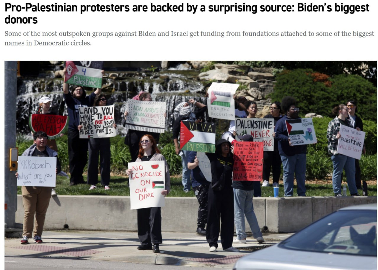 Издание выяснило, что антиизраильские протесты проводят организации, которые получали крупные гранты от фондов Джорджа Сороса, Билла Гейтса, Дэвида Рокфеллера и семейства Притцкер. В частности, речь об организациях "Еврейский голос за мир" и IfNotNow, которые имеют антисионисткую направленность. Их поддерживал фонд Tides Сороса, а также фонд Билла и Мелинды Гейтс.