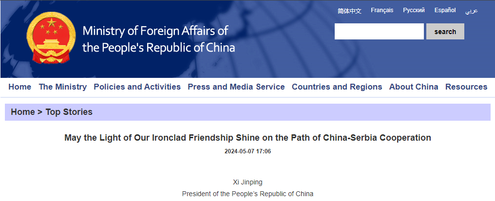 "По приглашению президента Республики Сербия Вучича председатель Си Цзиньпин 7 мая по местному времени начал государственный визит в Сербию. Этот визит является вторым визитом председателя Си Цзиньпина в Сербию за восемь лет", — говорится в публикации.