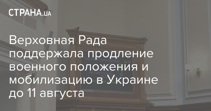 Верховная Рада продлила военное положение и всеобщую мобилизацию в Украине на 90 дней - до 11 августа. За проголосовали 336 депутатов.