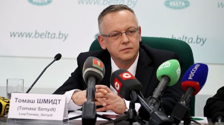 На пресс-конференции в Минске Шмидт заявил, что вынужденно покинул Польшу, потому что "подвергался преследованиям и угрозам за самостоятельную политическую позицию". Он выразил "несогласие с политикой и действиями властей" Польши, которые, по его мнению, под влиянием США и Великобритании "ведут страну к войне". А президента Беларуси Александра Лукашенко назвал "очень мудрым руководителем".