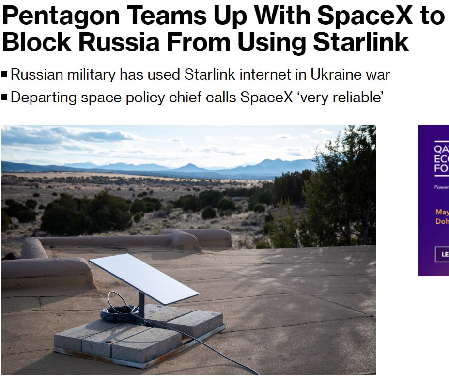 Пентагон вместе с компанией американского бизнесмена Илона Маска SpaceX заблокировали несанкционированное использование россиянами интернет-терминалов Starlink на поле боя.
