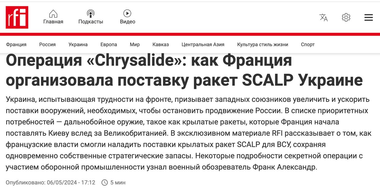 11.35 Франция передала Украине дальнобойные ракеты SCALP, которые подлежали утилизации, сообщает RFI.