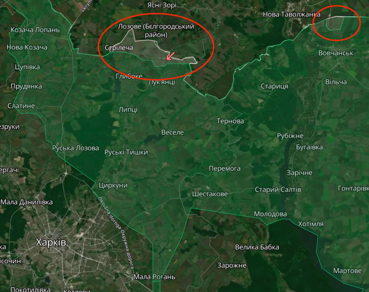 Оно началось ночью на двух участках: в направлении непосредственно Харькова, в селах Стрелка-Красное-Пыльная-Борисовка, а также в сторону Волчанска. Сейчас они оба на карте DS помечены серой зоной.