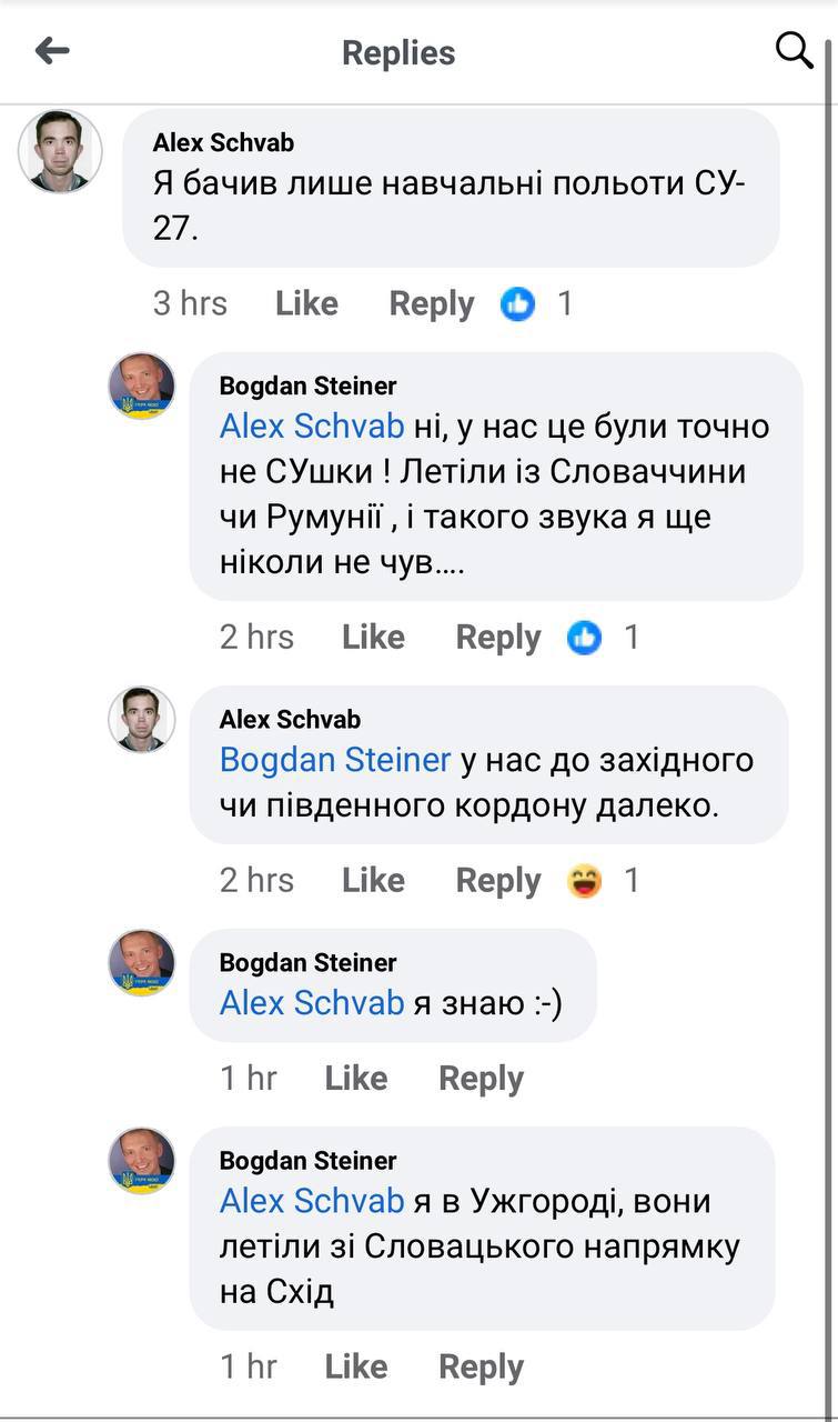 "Сегодня первые F-16 пролетели у меня над головой на восток", – написал в соцсети житель Закарпатья Богдан Штайнер.