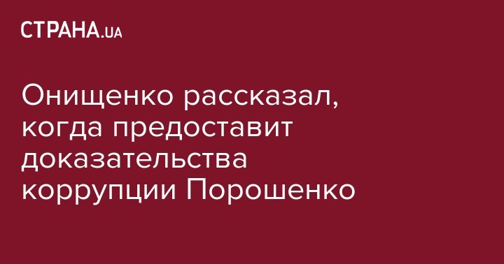Онищенко рассказал, когда предоставит доказательства коррупции Порошенко