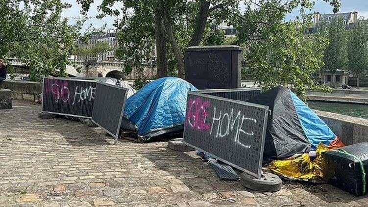 Лагеря бездомных все еще разбросаны вдоль Сены, но почти каждое утро полиция проводит в них рейды.