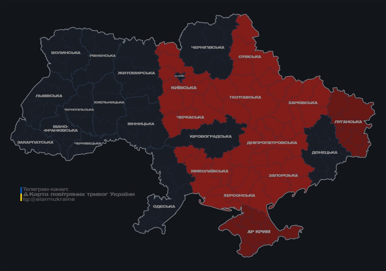 21:06 Тревога объявлена в Киевской и ряде других областей.