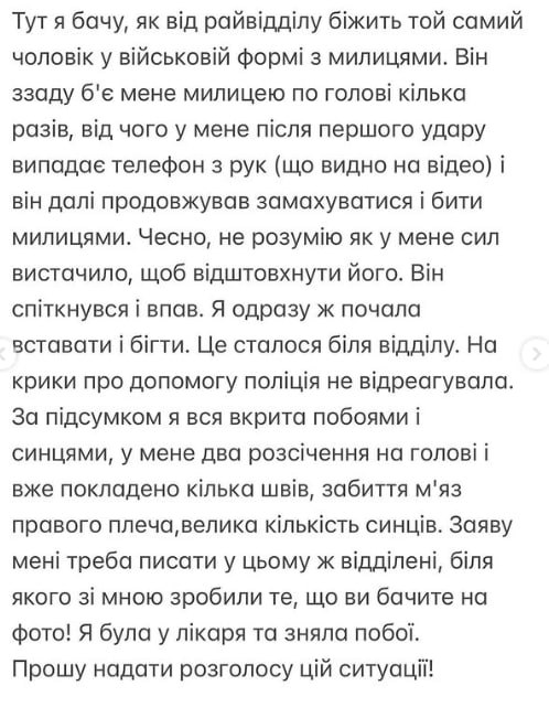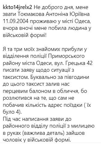 Позже одесситка опубликовала подробности истории своего избиения.