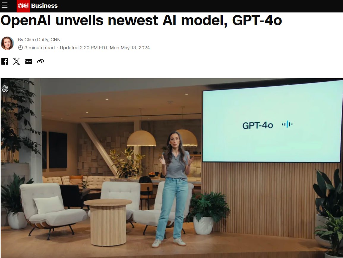 Компания OpenAI представила новую модель искусственного интеллекта GPT-4o.
