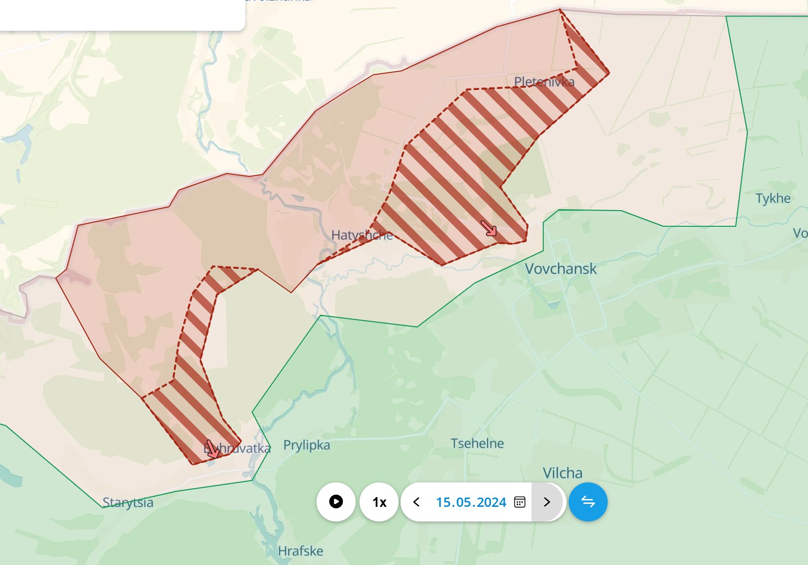 На других участках российского прорыва - в направлении Липцов - россияне, как подтверждает Генштаб, захватили Лукьянцы. Минобороны РФ добавляет, что захвачено Глубокое, но Украина этого не подтверждала. На карте паблика Deep State оно наполовину захвачено РФ, а наполовину в серой зоне.