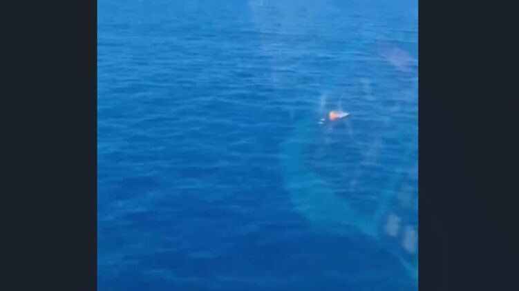 В сети появилось видео стрельбы по морским беспилотникам в Чёрном море. Россияне используют для их поражения вертолёты.