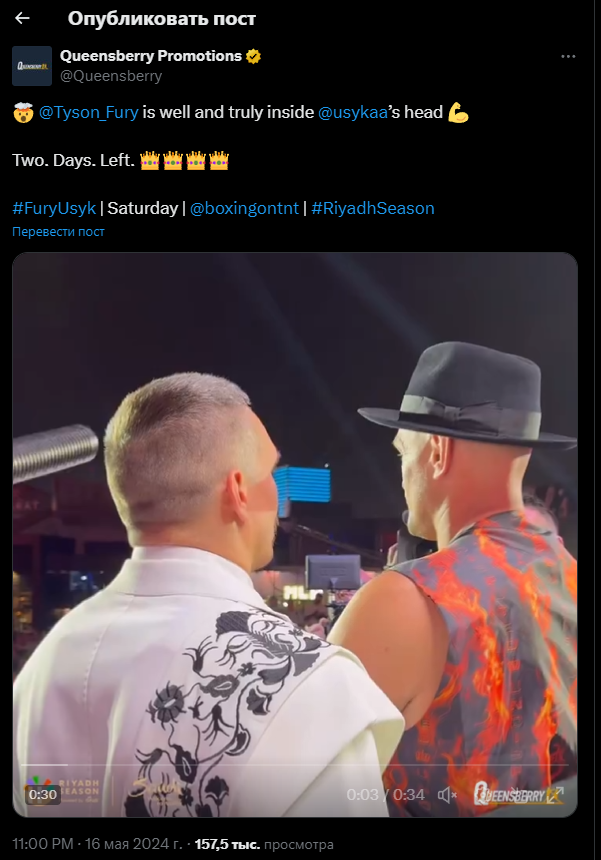 Украинец подошел к британцу после мероприятия и встал напротив него для битвы взглядов. Однако Фьюри, игнорируя Усика, смотрел в сторону зрителей.