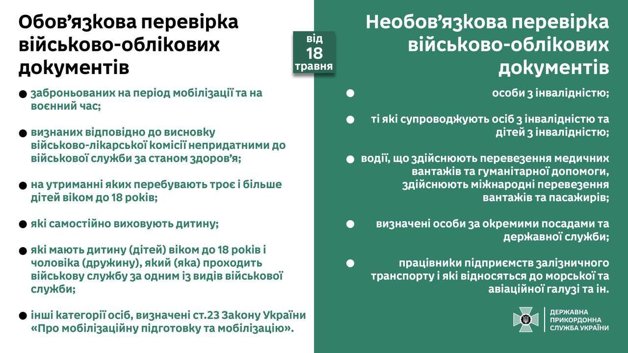 С 18 мая на границе будут действовать новые правила для тех мужчин 18-60 лет, которые имеют право на выезд. Некоторые категории выезжающих должны будут все равно показать пограничнику военно-учетные документы. А именно: