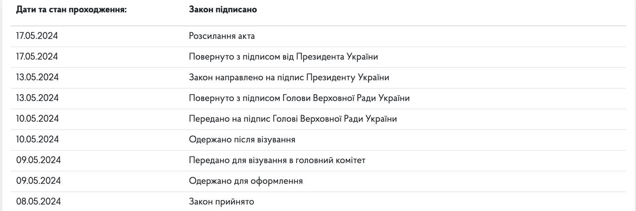 Карта законопроекта с подписью главы государства опубликована на сайте Верховной Рады.