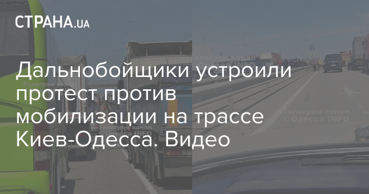 Дальнобойщики устроили акцию протеста на трассе Киев-Одесса. Они вывели на дорогу десятки фур, образовав там огромную пробку. Водители выступают против нового закона о мобилизации.